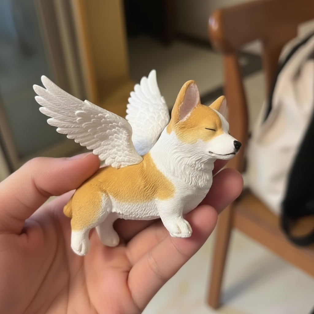 I ordered this as a surprise for my wife. Last Christmas, we lost our beloved dog, and she’s been really struggling with the grief ever since. When she unwrapped it, she just burst into happy tears. It looks exactly like him—the details are spot-on—and those angel wings make it feel like he’s still right here with us, watching over. Seriously, the best surprise gift I’ve ever given.